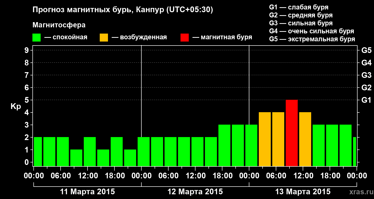 Прогноз магнитных бурь в Канпуре — 11 марта 2015 года