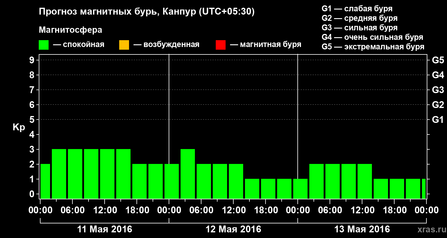 Прогноз магнитных бурь в Канпуре — 11 мая 2016 года
