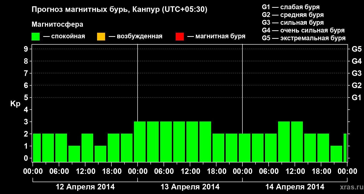 Прогноз магнитных бурь в Канпуре — 12 апреля 2014 года