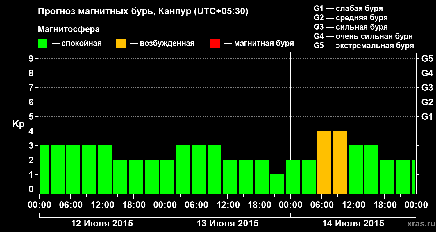 Прогноз магнитных бурь в Канпуре — 12 июля 2015 года