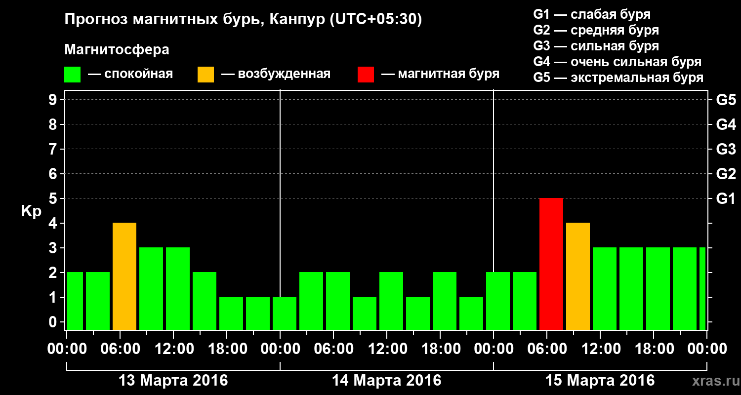 Прогноз магнитных бурь в Канпуре — 13 марта 2016 года