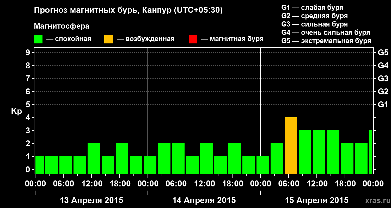 Прогноз магнитных бурь в Канпуре — 13 апреля 2015 года