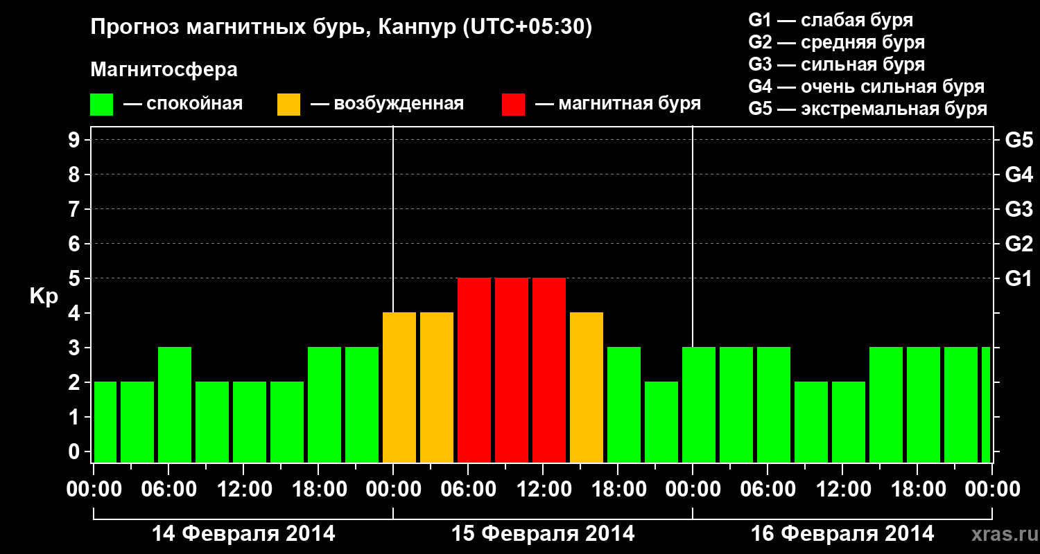 Прогноз магнитных бурь в Канпуре — 14 февраля 2014 года