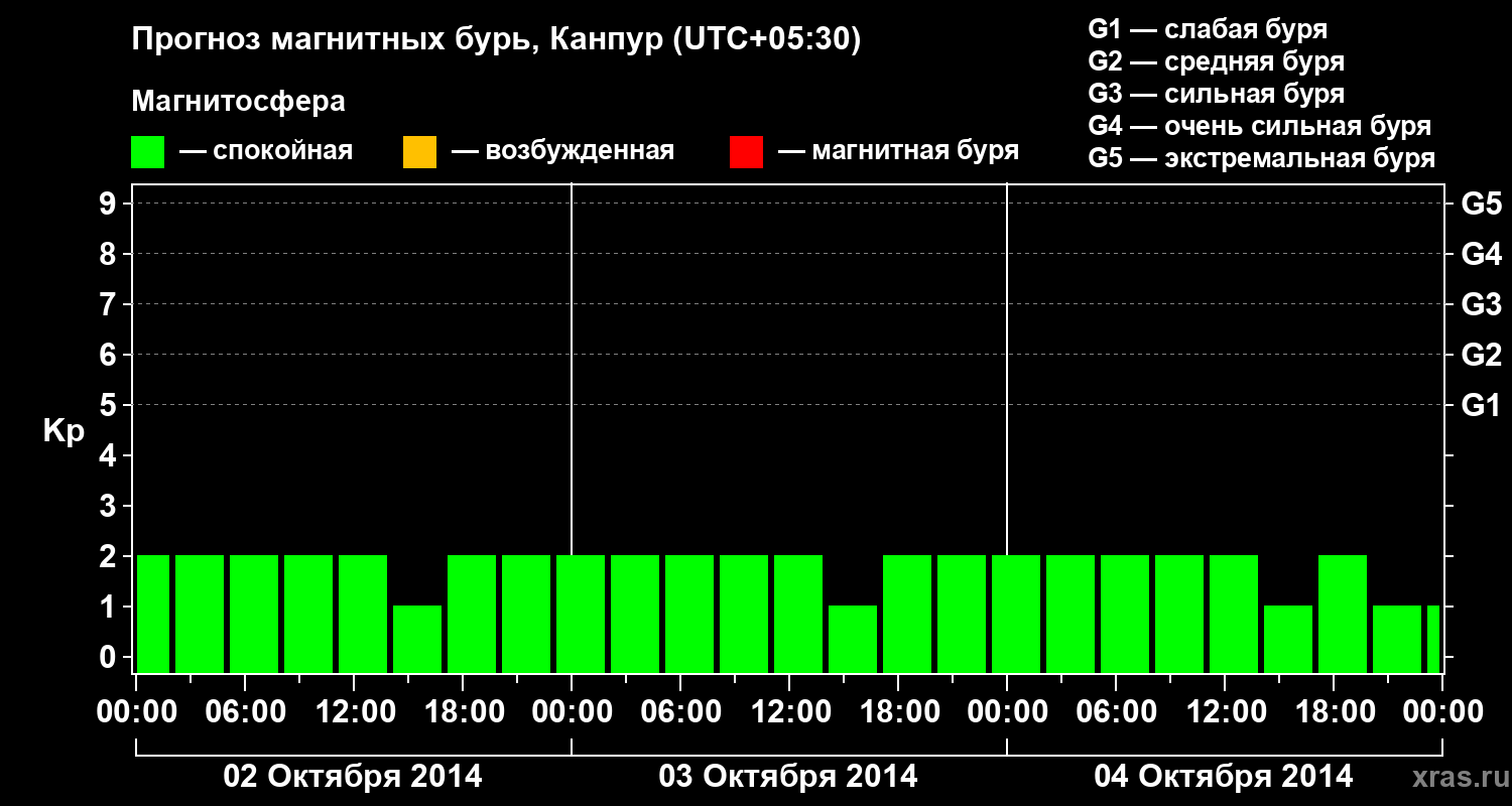 Прогноз магнитных бурь в Канпуре — 2 октября 2014 года