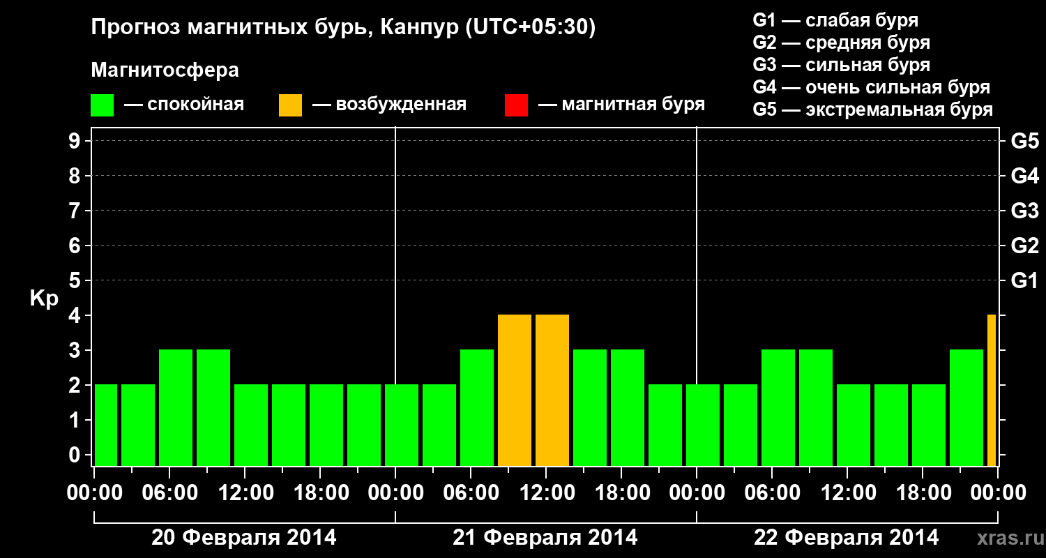 Прогноз магнитных бурь в Канпуре — 20 февраля 2014 года