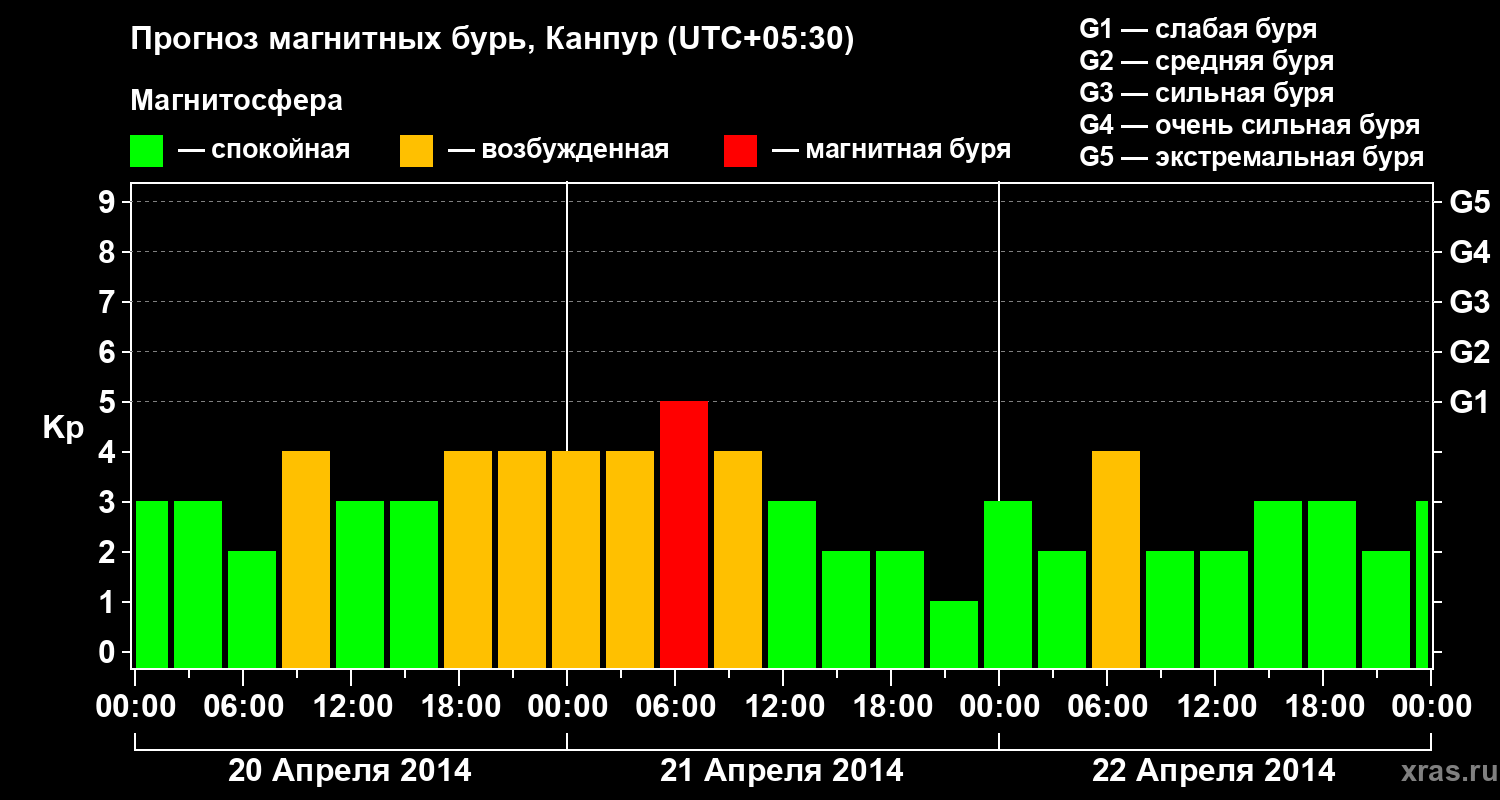 Прогноз магнитных бурь в Канпуре — 20 апреля 2014 года