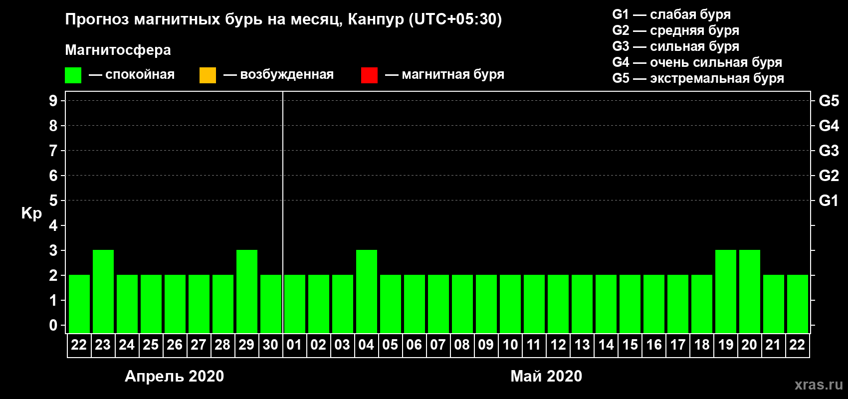 Прогноз магнитных бурь в Канпуре — 22 апреля 2020 года