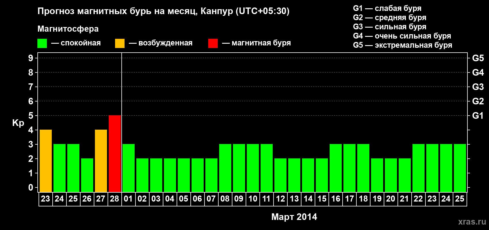 Прогноз магнитных бурь в Канпуре — 23 февраля 2014 года
