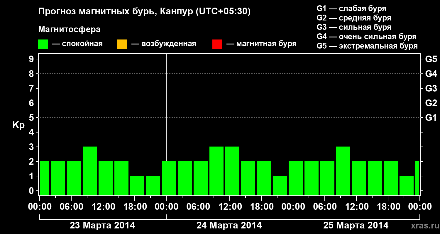 Прогноз магнитных бурь в Канпуре — 23 марта 2014 года