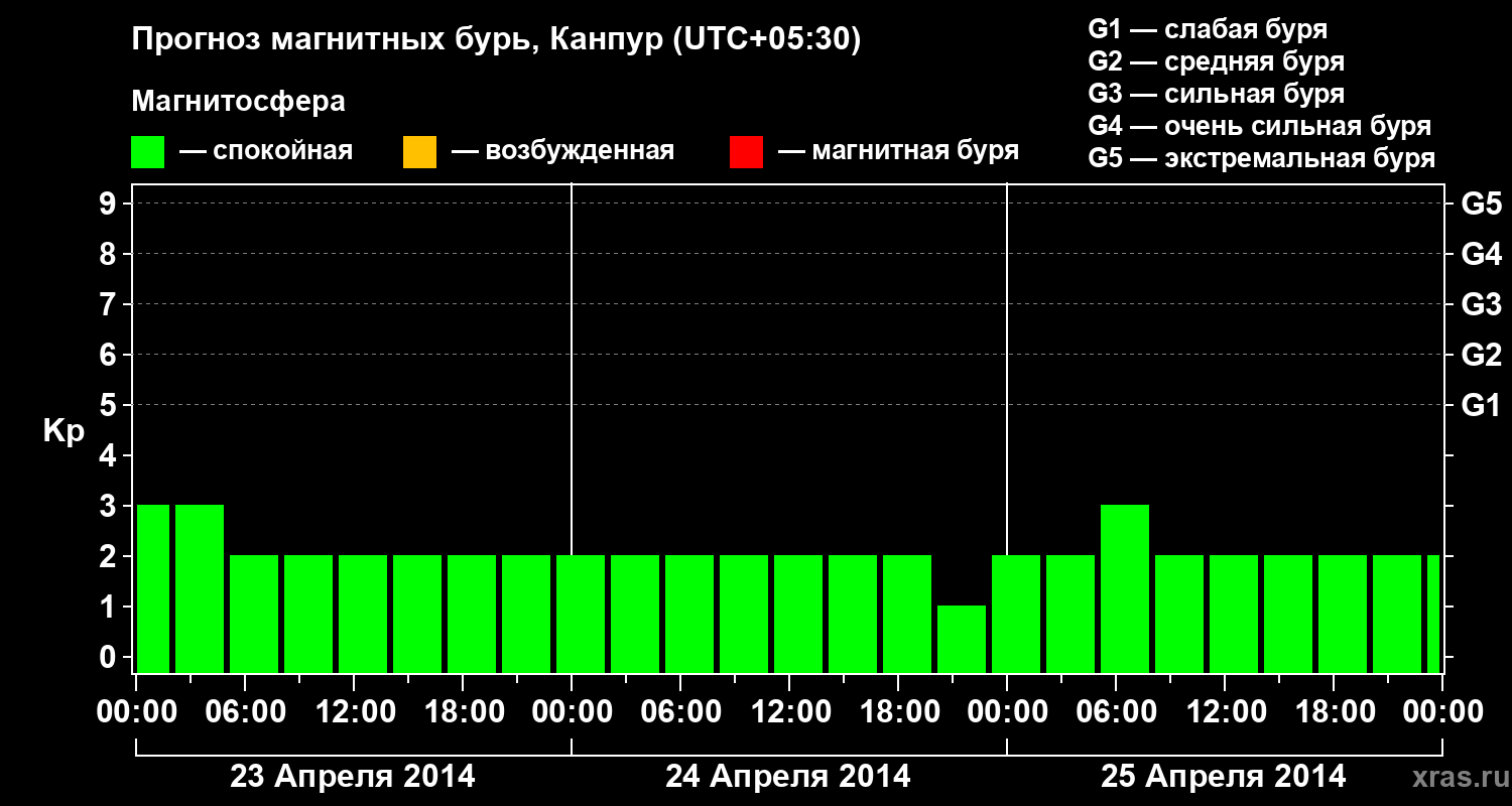 Прогноз магнитных бурь в Канпуре — 23 апреля 2014 года
