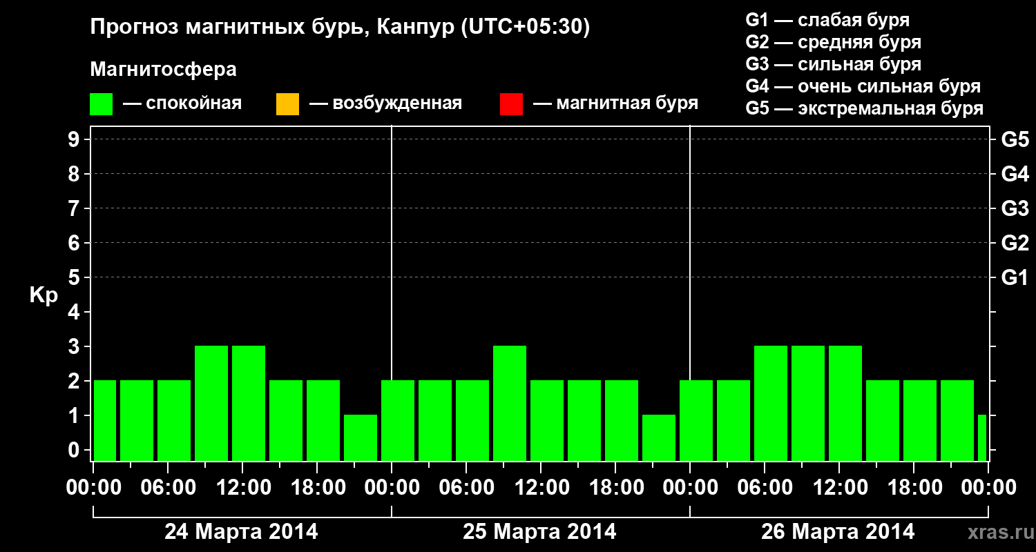 Прогноз магнитных бурь в Канпуре — 24 марта 2014 года