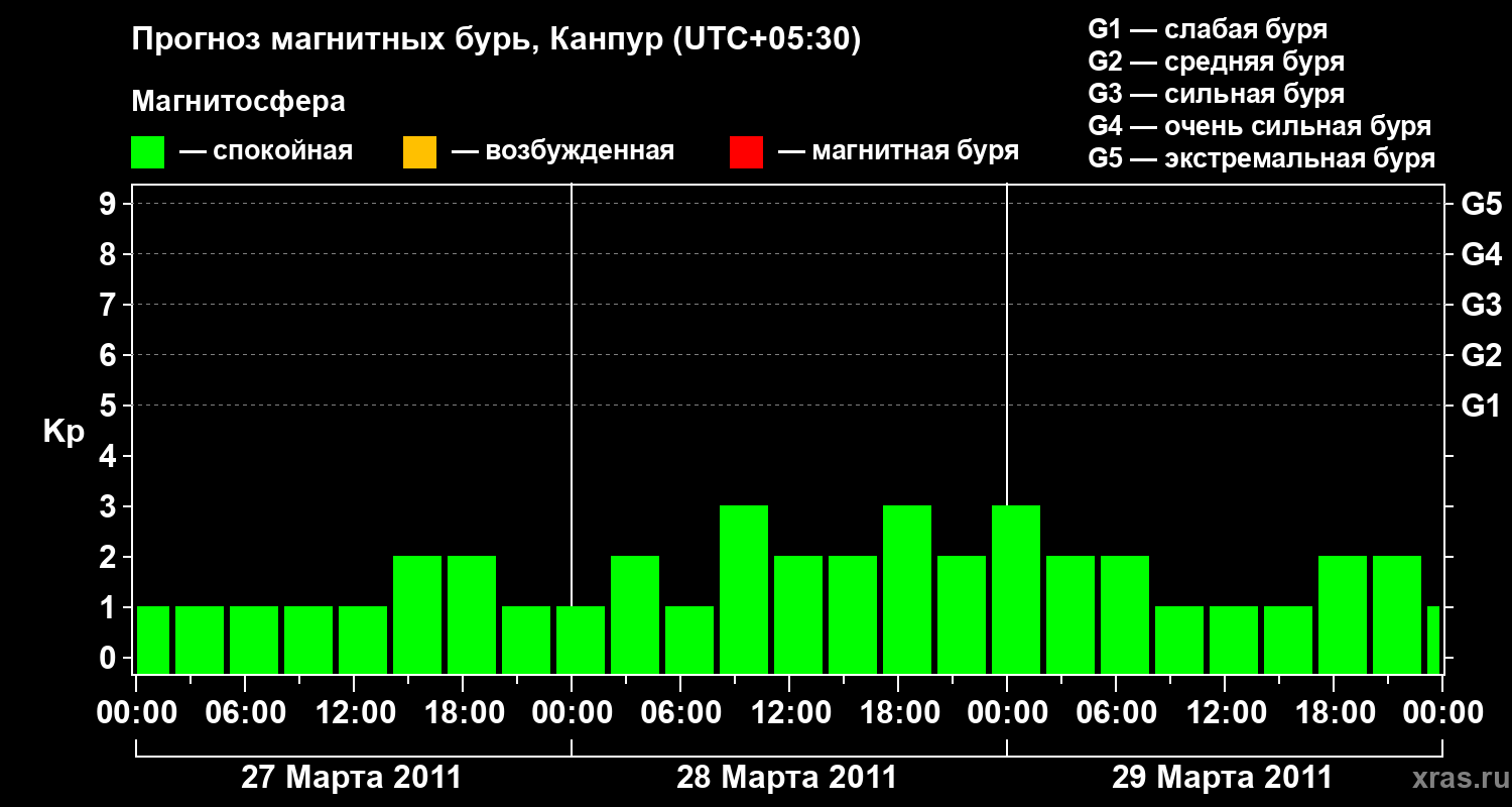 Прогноз магнитных бурь в Канпуре — 27 марта 2011 года