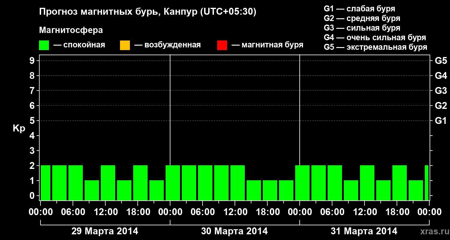 Прогноз магнитных бурь в Канпуре — 29 марта 2014 года