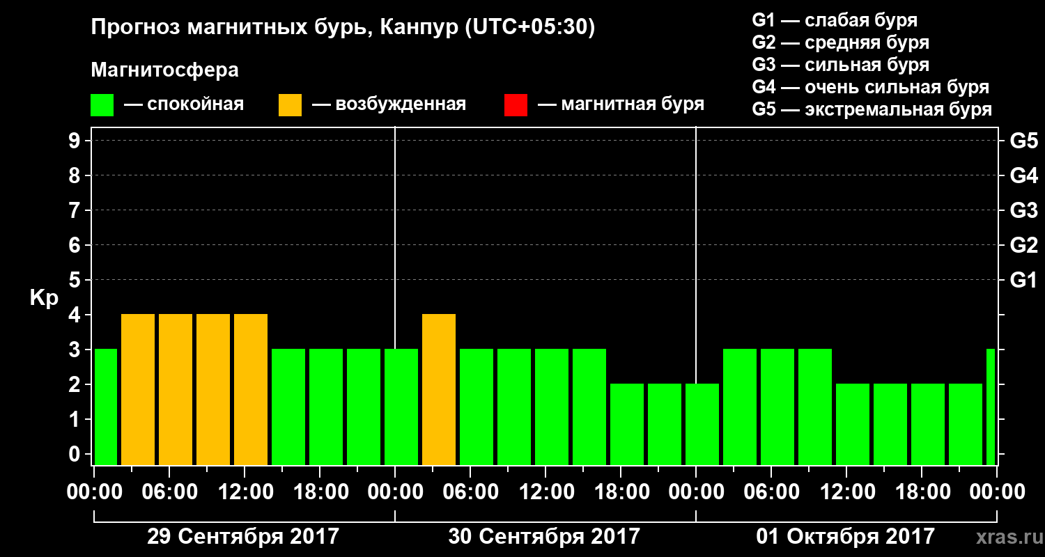 Прогноз магнитных бурь в Канпуре — 29 сентября 2017 года
