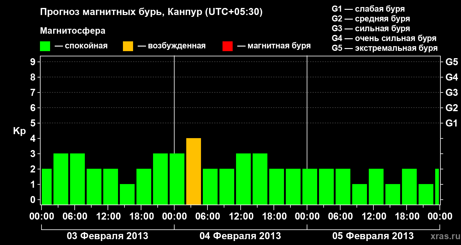 Прогноз магнитных бурь в Канпуре — 3 февраля 2013 года