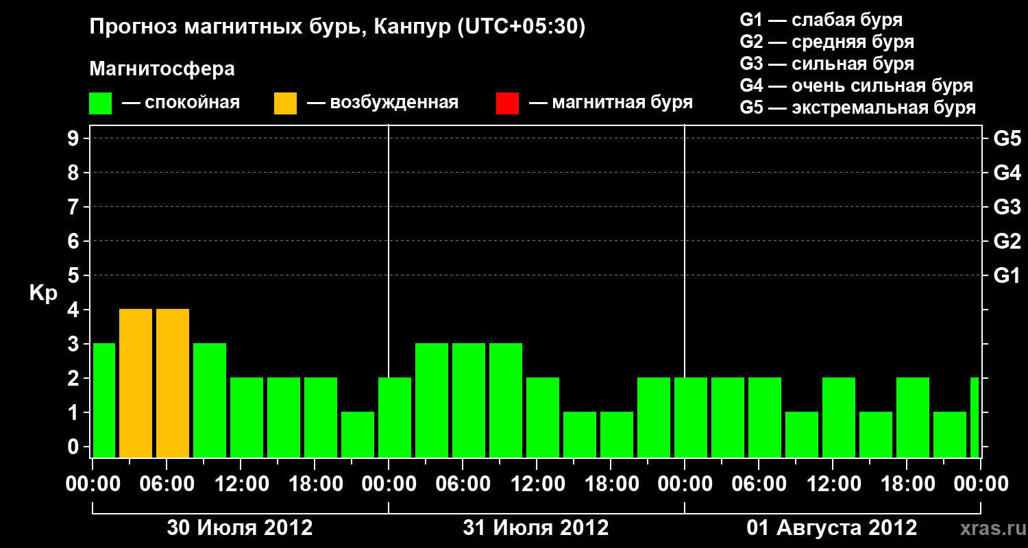 Прогноз магнитных бурь в Канпуре на 30 июля 2012 года