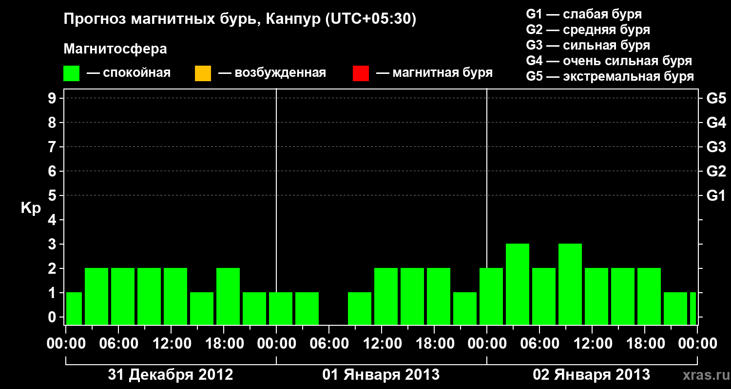 Прогноз магнитных бурь в Канпуре на 31 декабря 2012 года