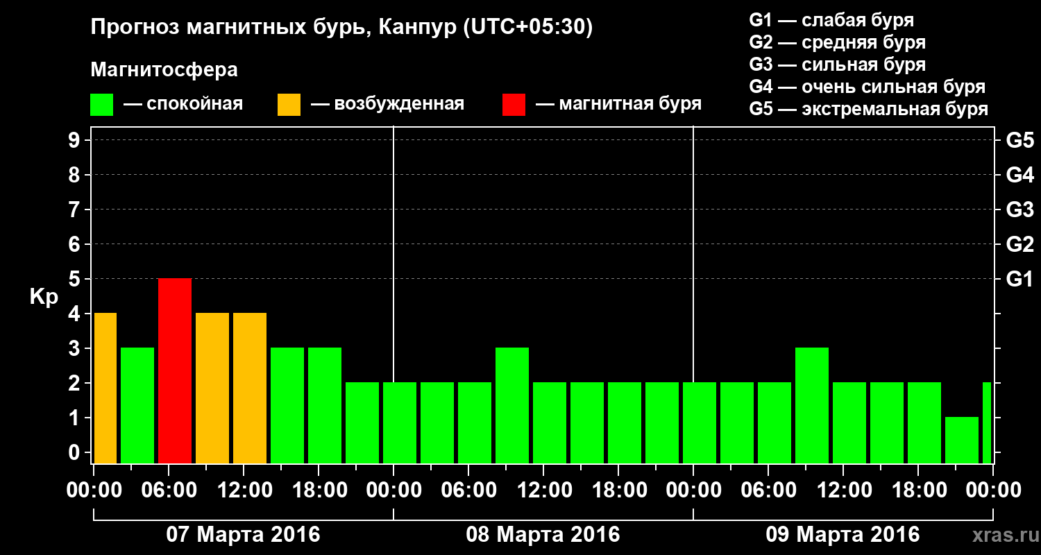 Прогноз магнитных бурь в Канпуре — 7 марта 2016 года
