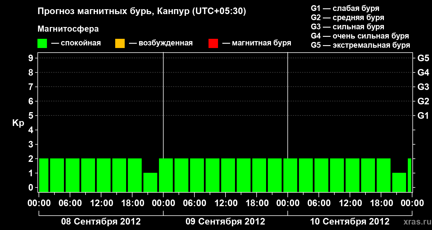 Прогноз магнитных бурь в Канпуре — 8 сентября 2012 года