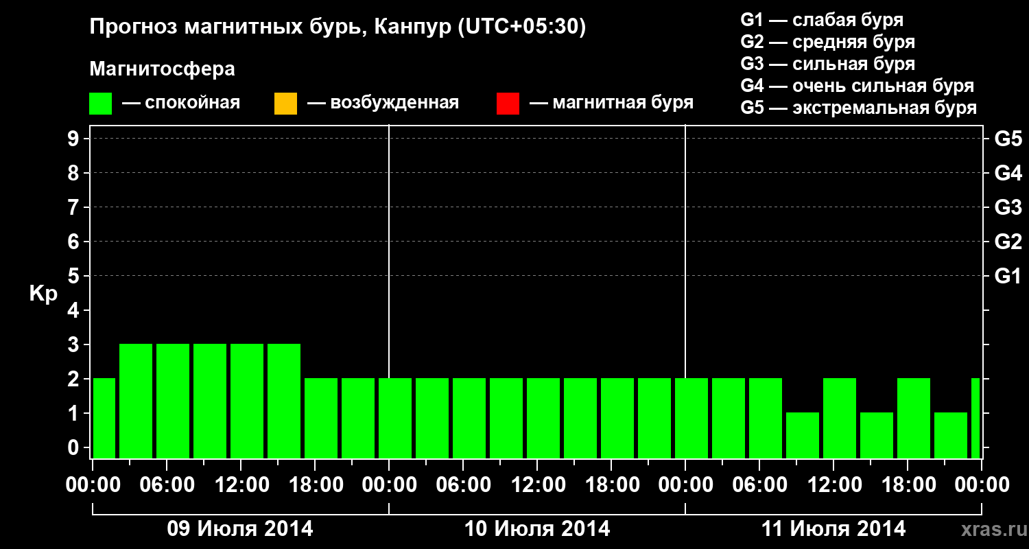 Прогноз магнитных бурь в Канпуре — 9 июля 2014 года