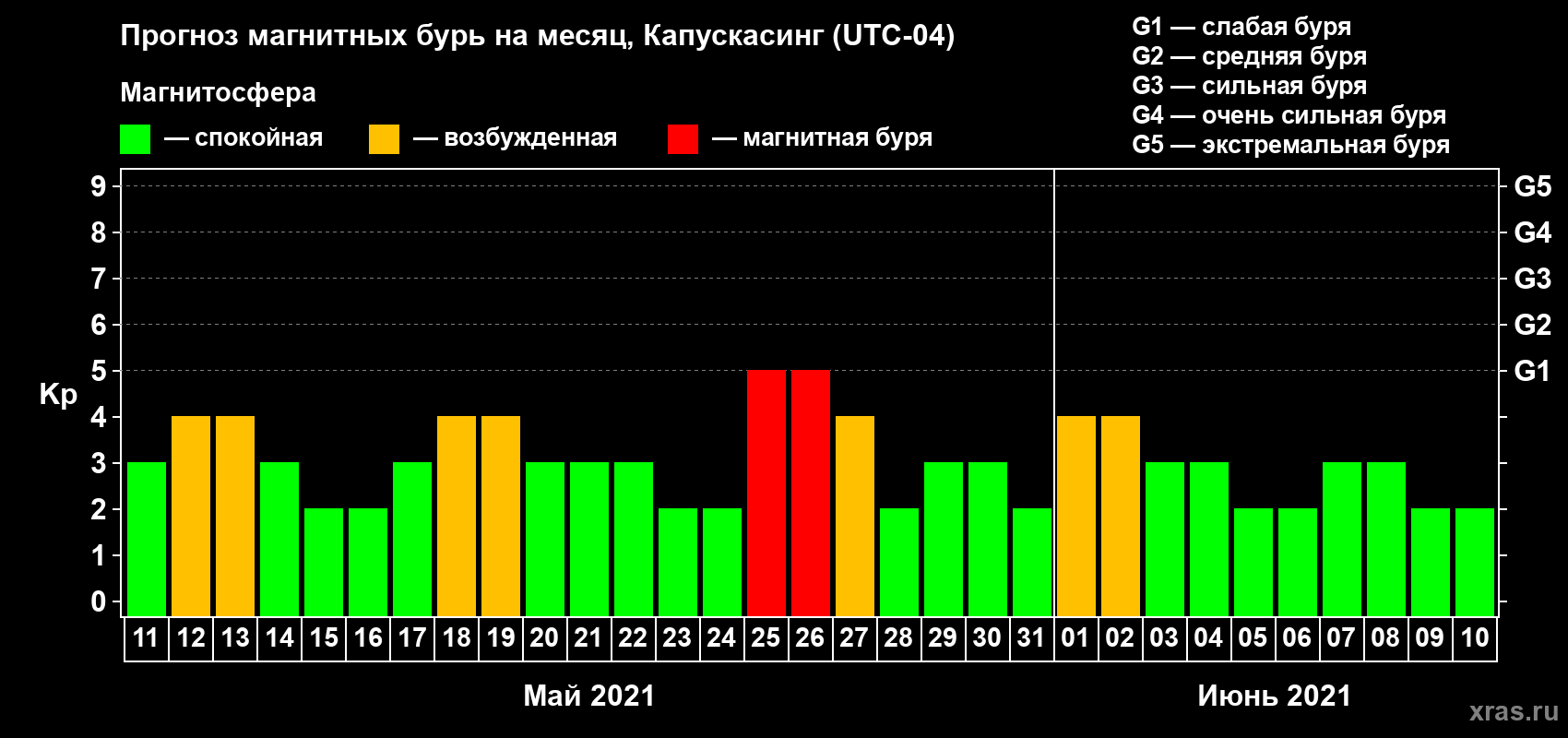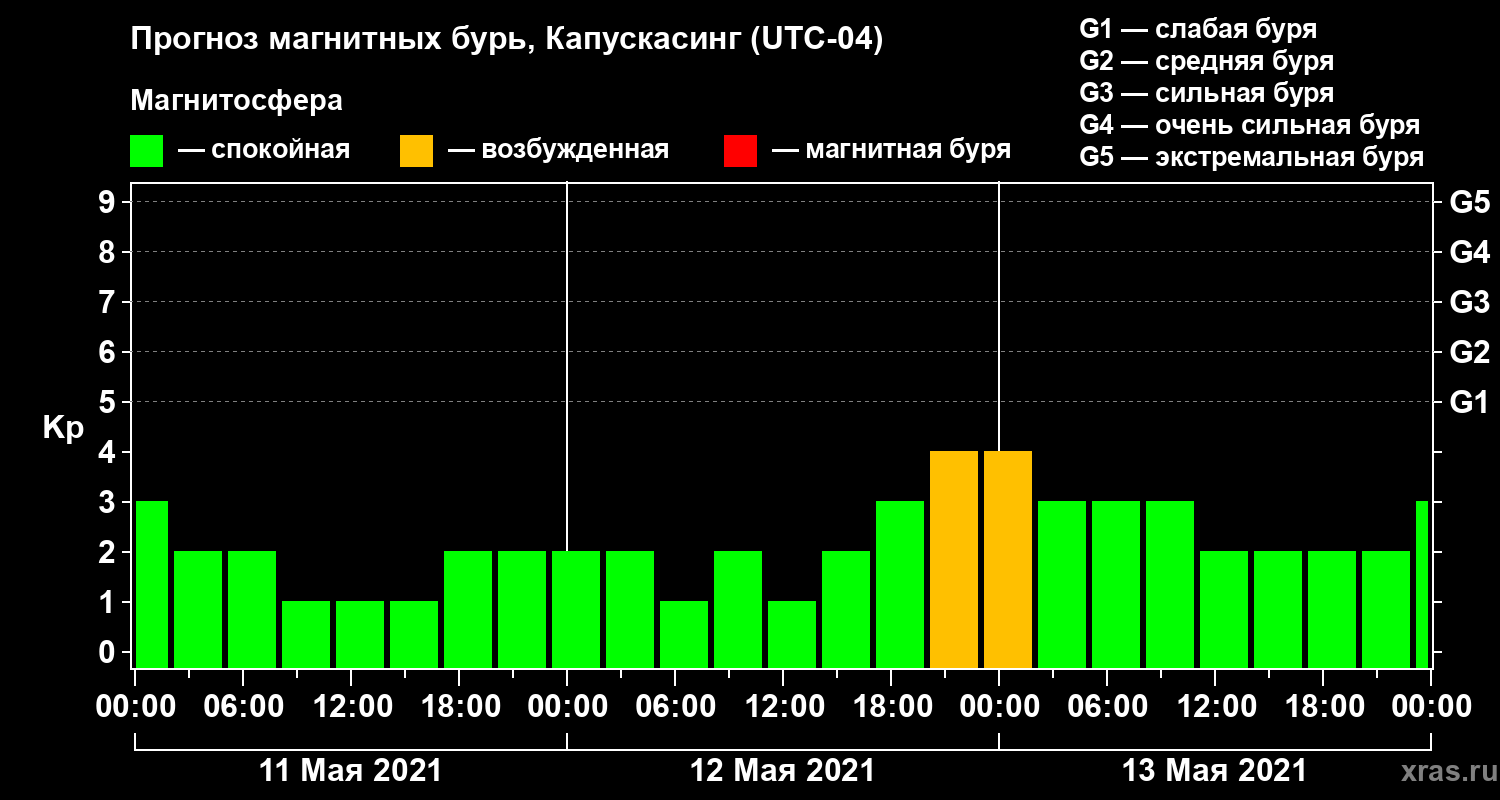 Прогноз магнитных бурь в Капускасинге — 11 мая 2021 года