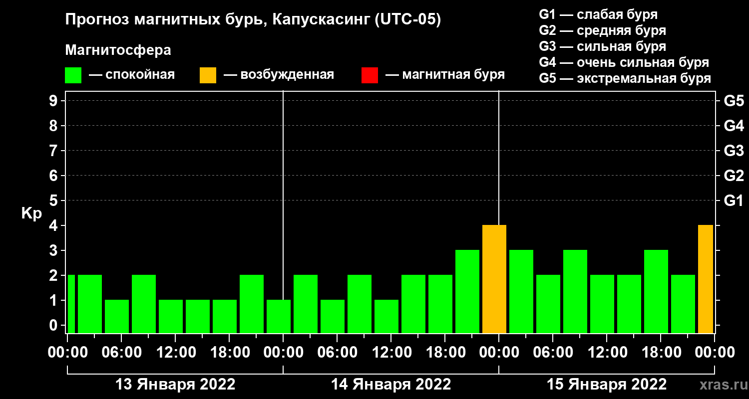 Прогноз магнитных бурь в Капускасинге — 13 января 2022 года