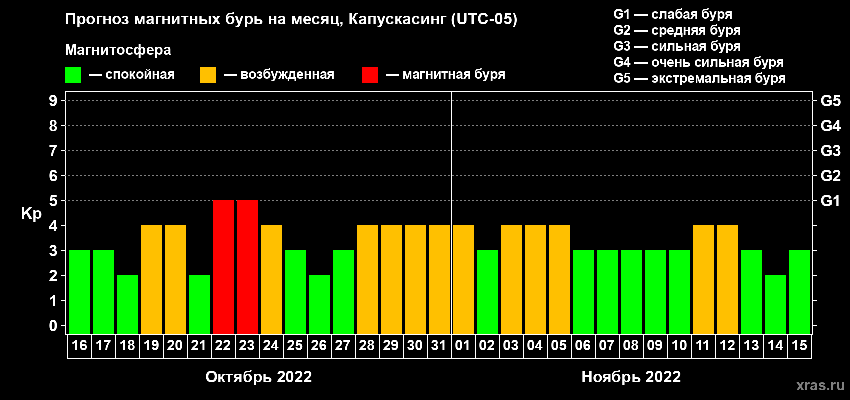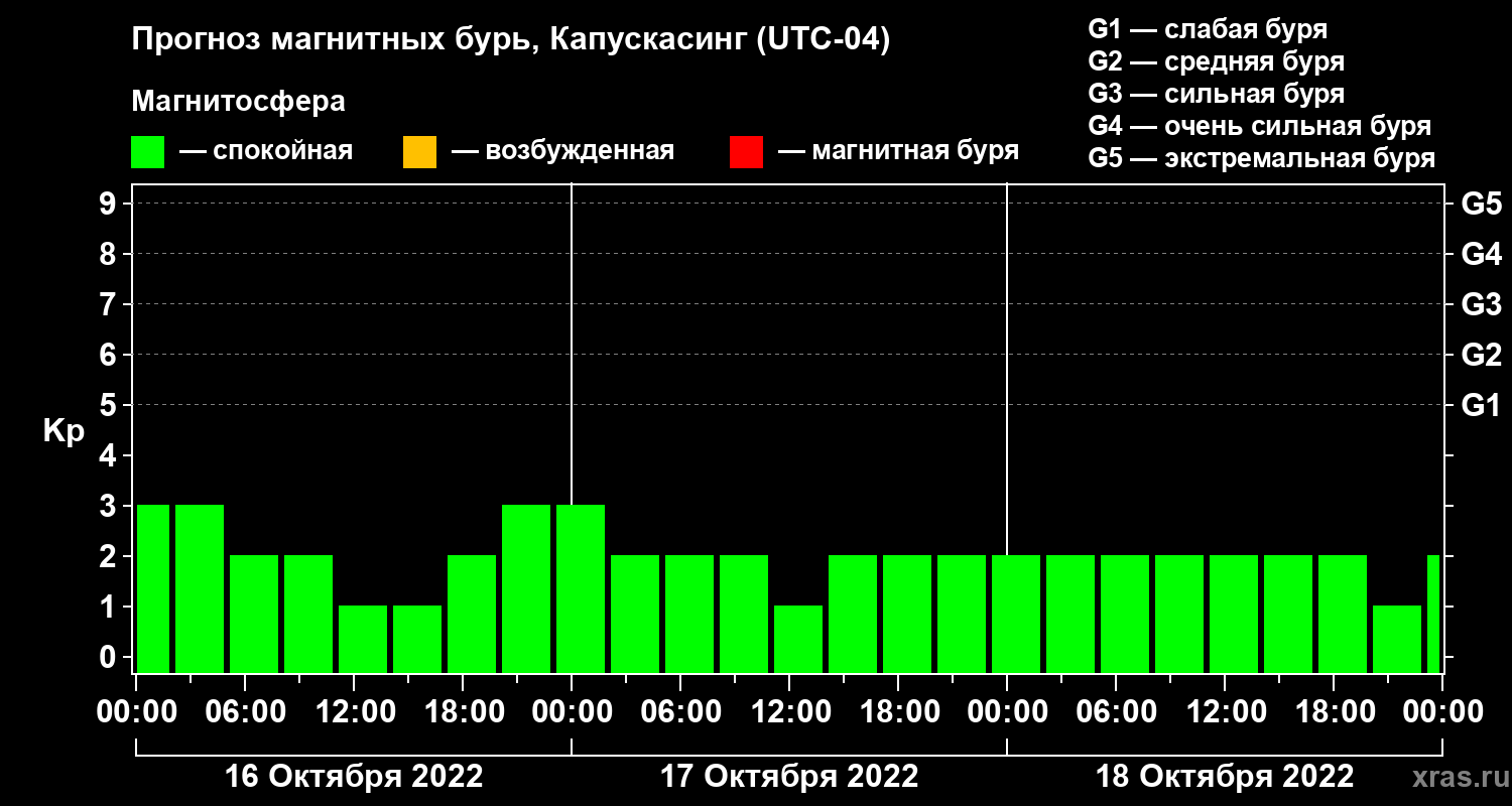 Прогноз магнитных бурь в Капускасинге — 16 октября 2022 года