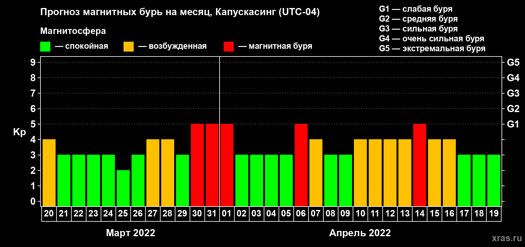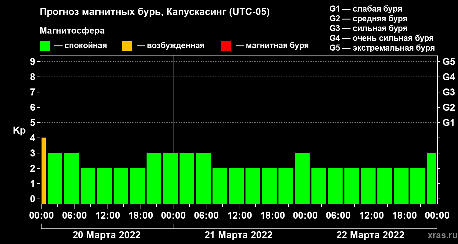 Прогноз магнитных бурь в Капускасинге на 20 марта 2022 года
