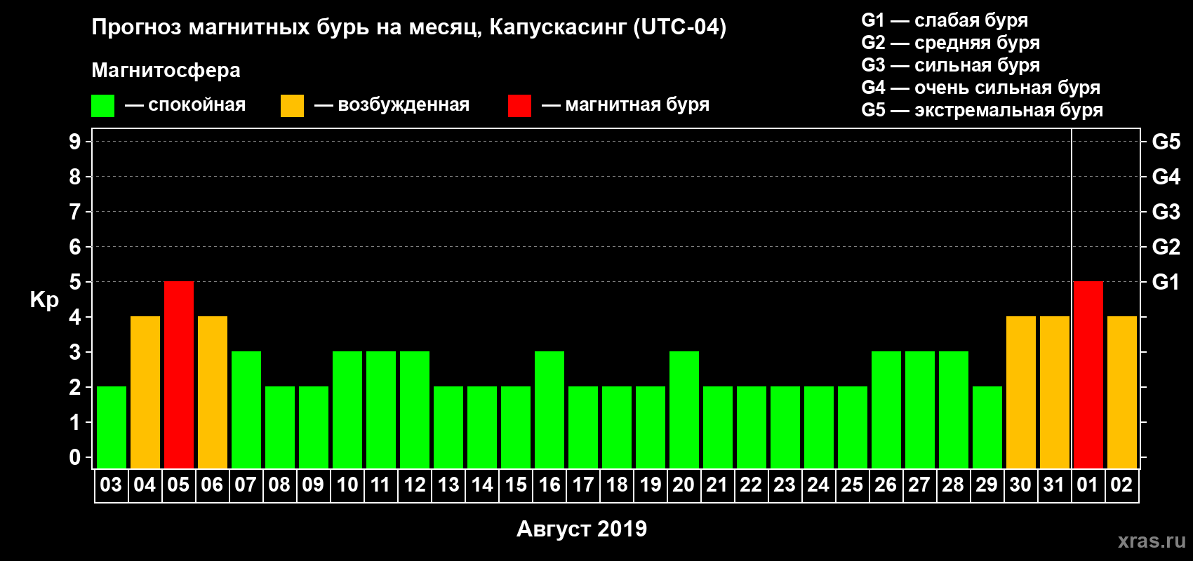 Прогноз магнитных бурь в Капускасинге — 3 августа 2019 года
