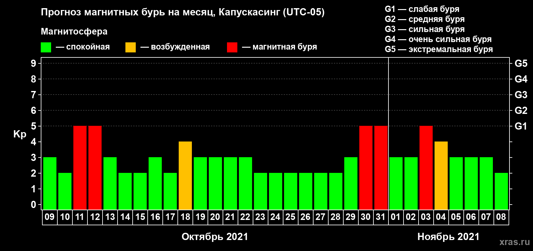 Прогноз магнитных бурь в Капускасинге — 9 октября 2021 года