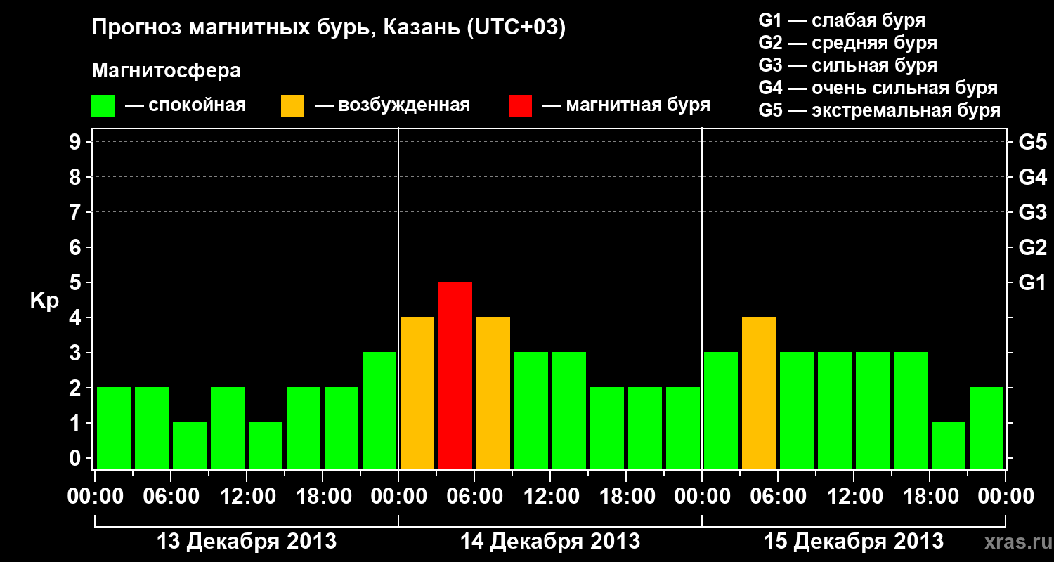 Прогноз магнитных бурь Казани — 13 декабря 2013 года
