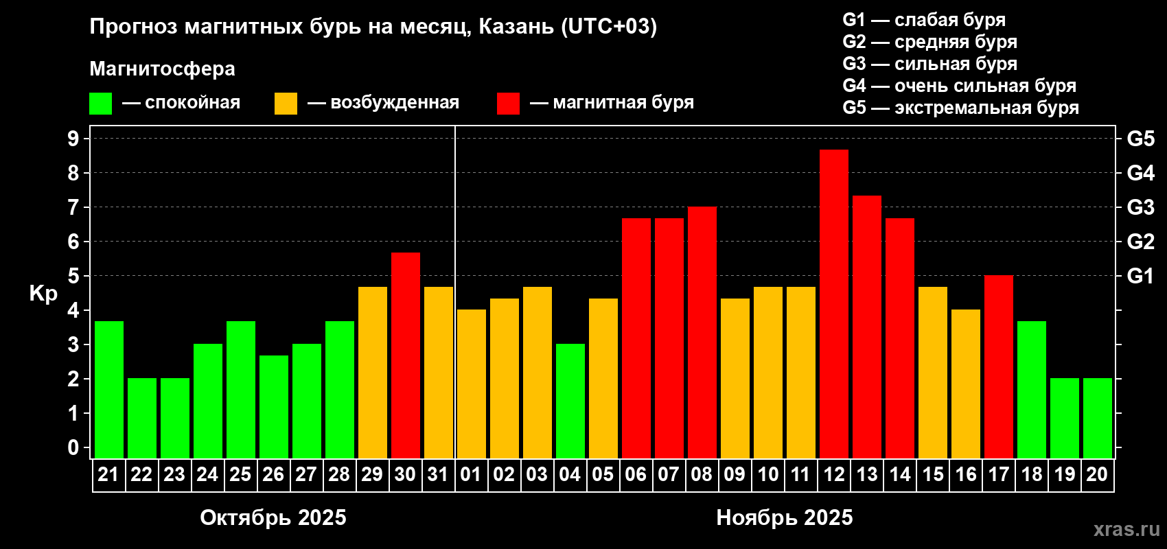 Прогноз магнитных бурь Казани — 21 октября 2025 года