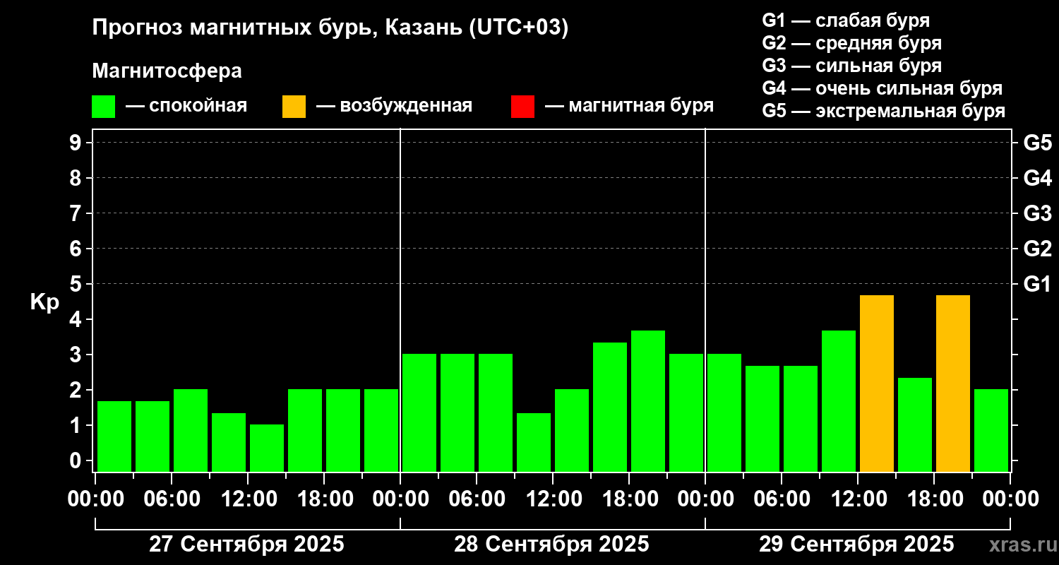 Прогноз магнитных бурь Казани — 27 сентября 2025 года