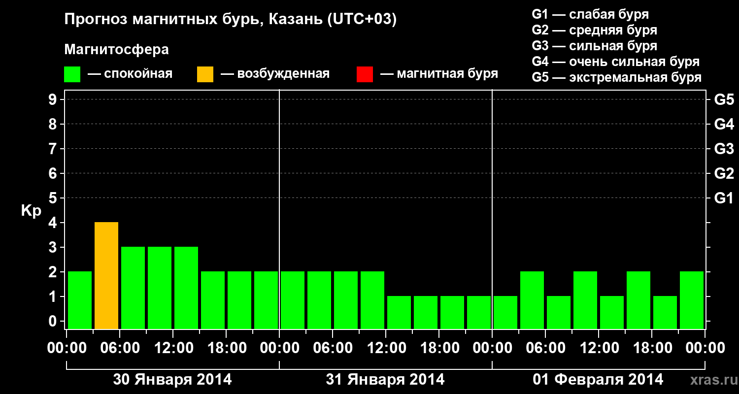Прогноз магнитных бурь Казани — 30 января 2014 года