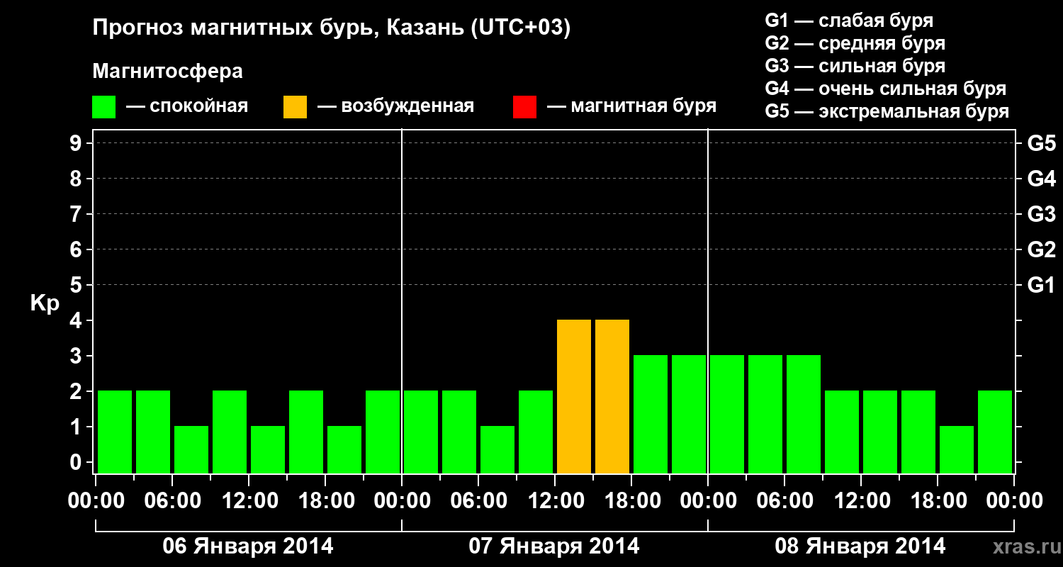 Прогноз магнитных бурь Казани — 6 января 2014 года