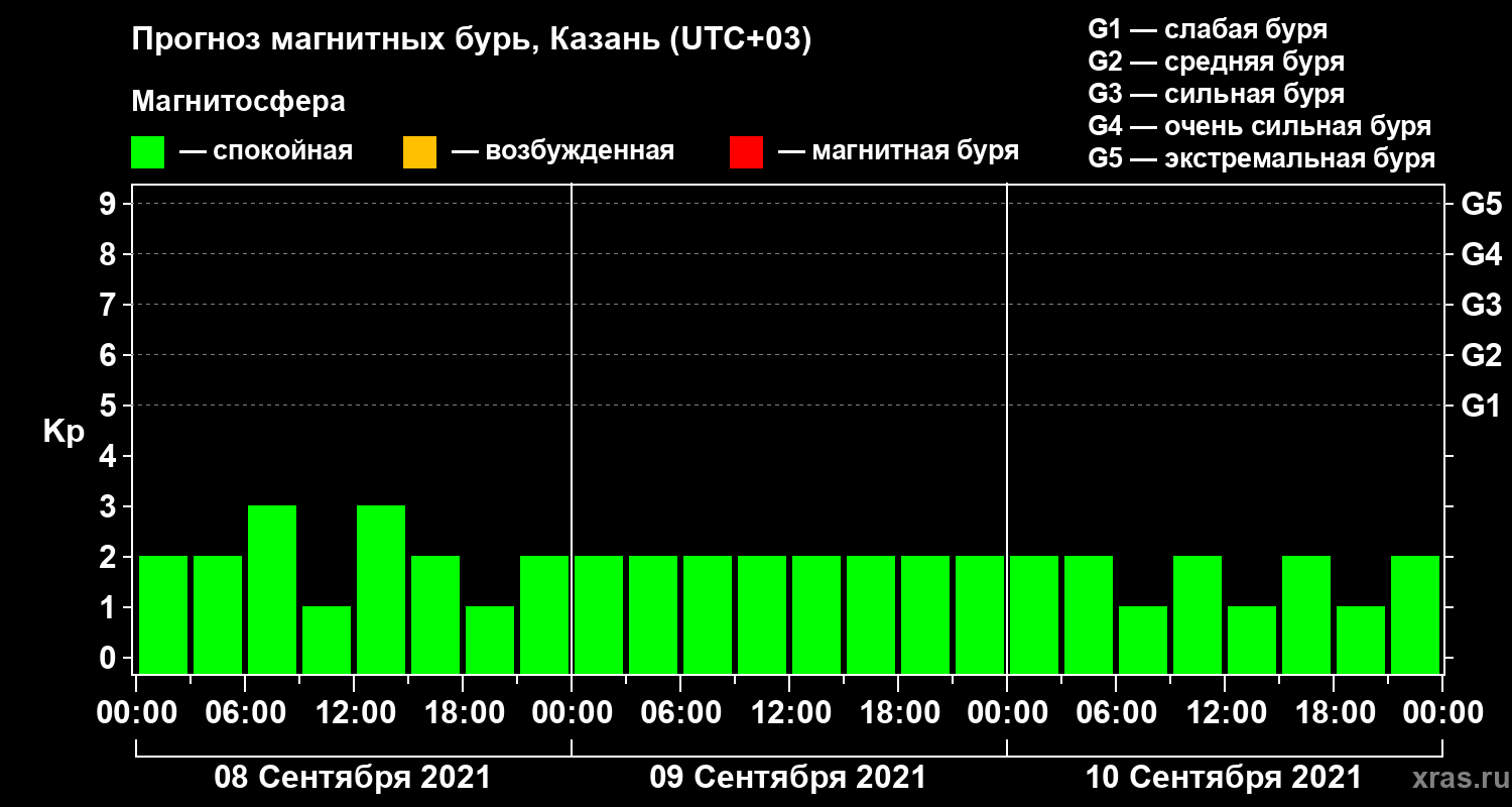 Прогноз магнитных бурь Казани — 8 сентября 2021 года