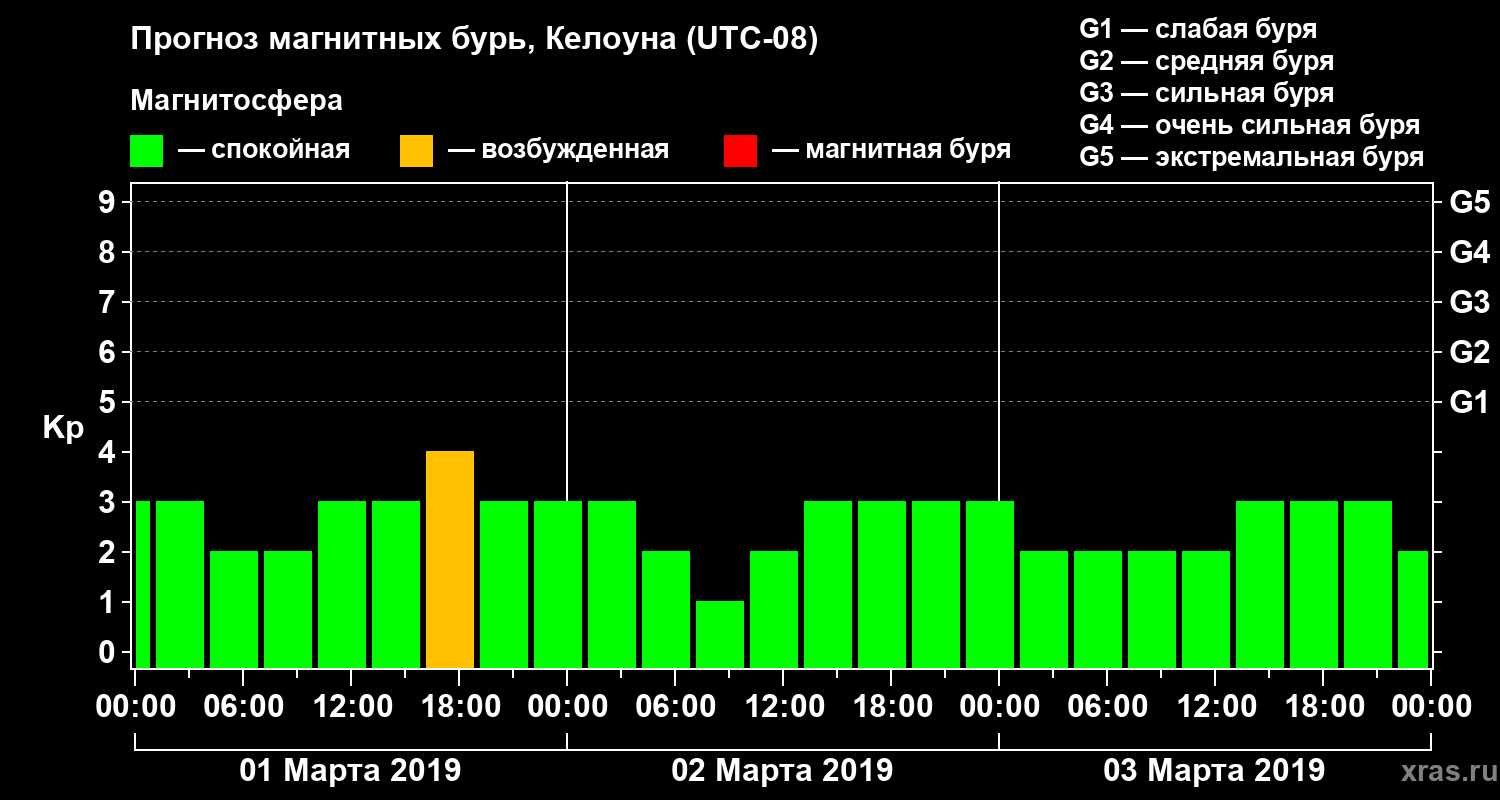 Прогноз магнитных бурь в Келоуне на 1 марта 2019 года