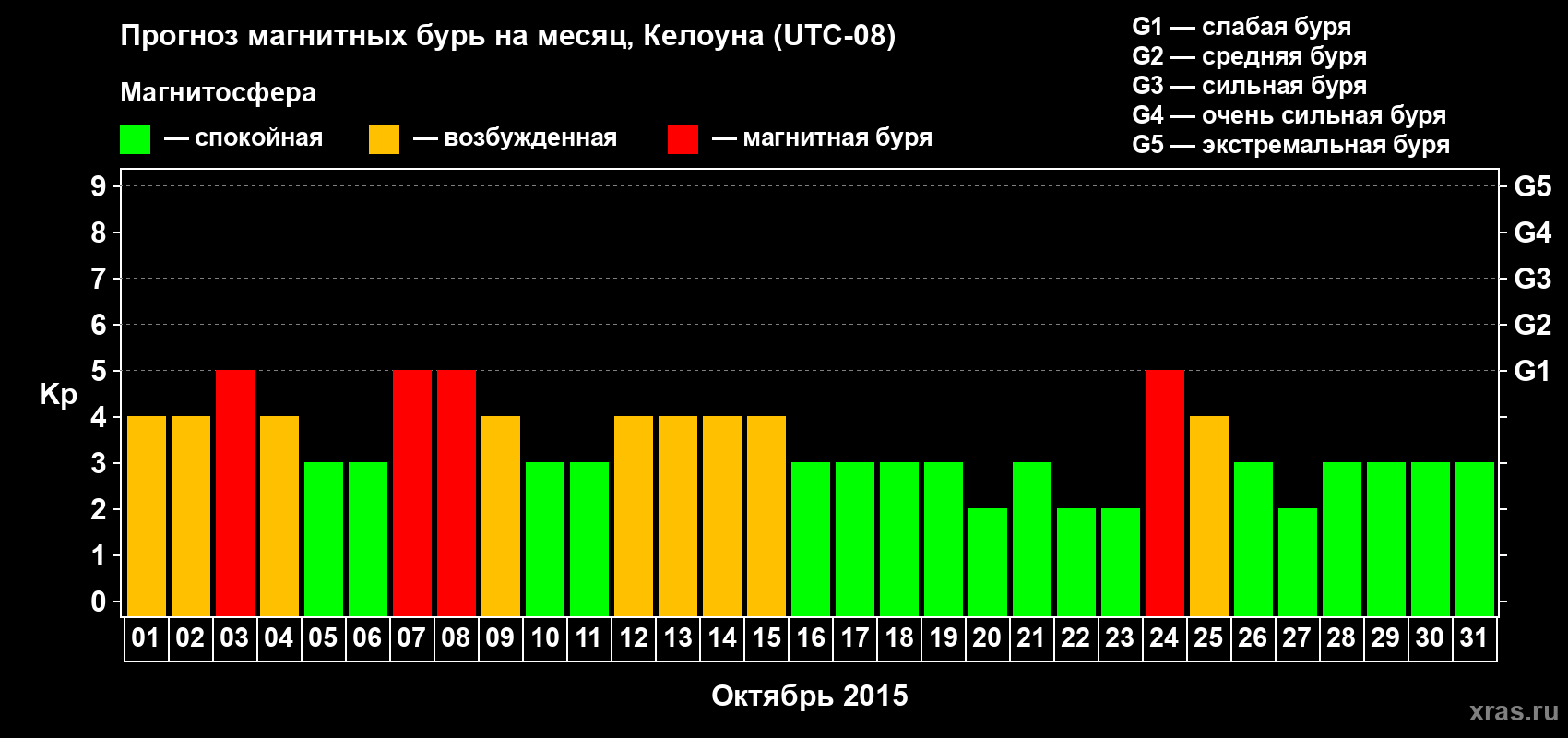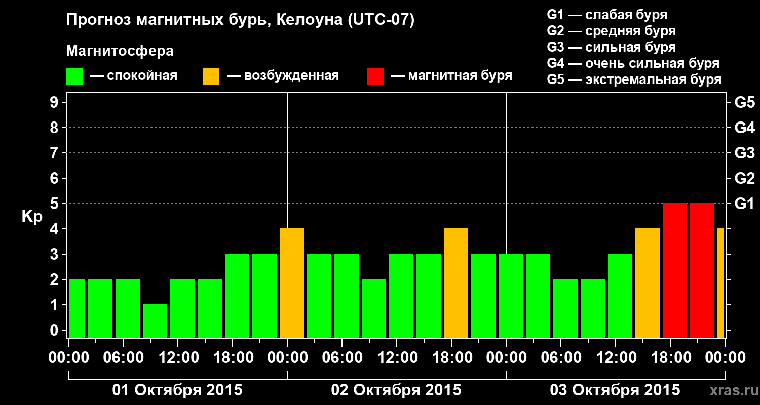 Прогноз магнитных бурь в Келоуне на 1 октября 2015 года