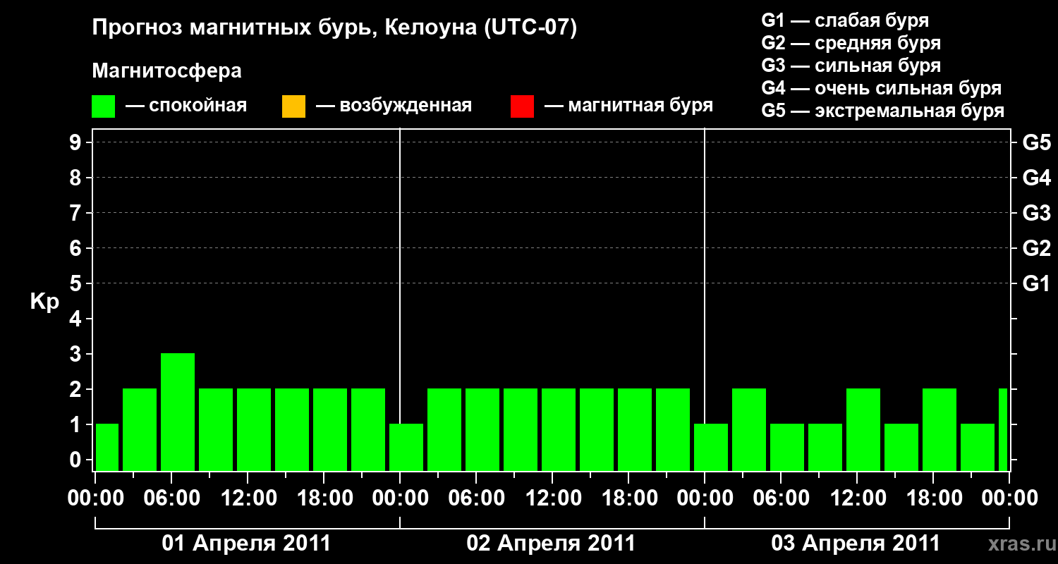 Прогноз магнитных бурь в Келоуне — 1 апреля 2011 года