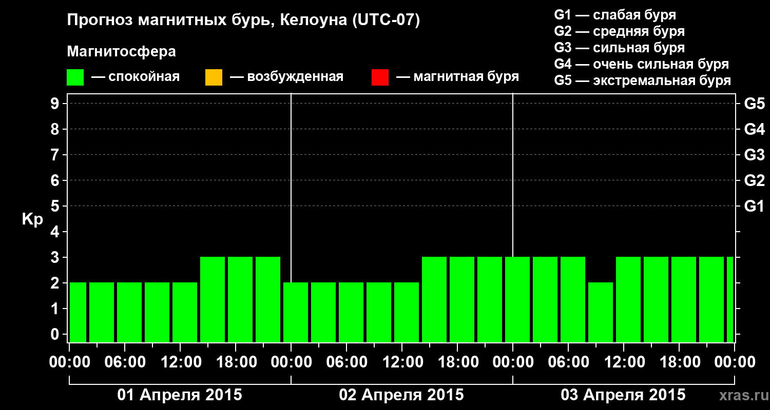 Прогноз магнитных бурь в Келоуне на 1 апреля 2015 года