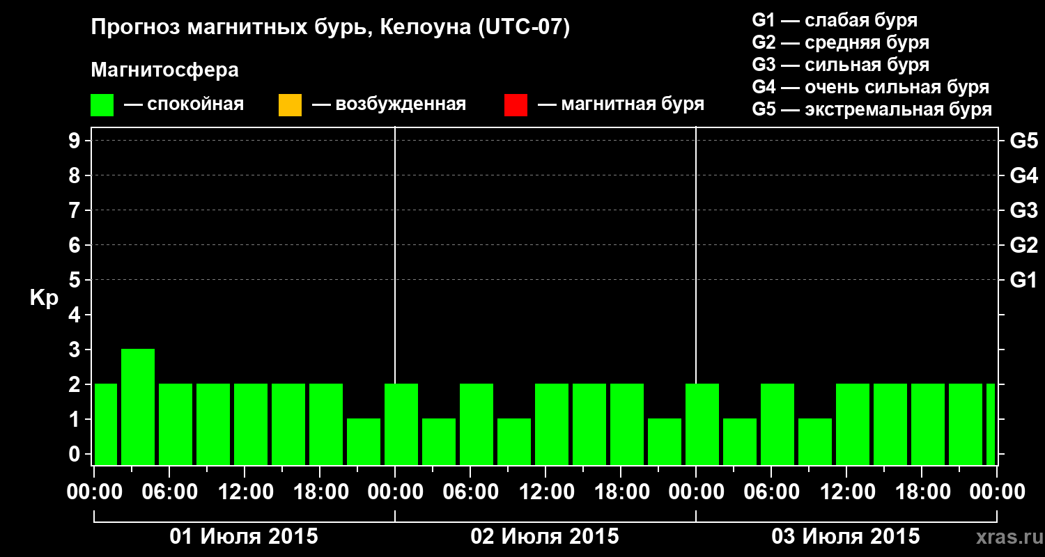 Прогноз магнитных бурь в Келоуне на 1 июля 2015 года