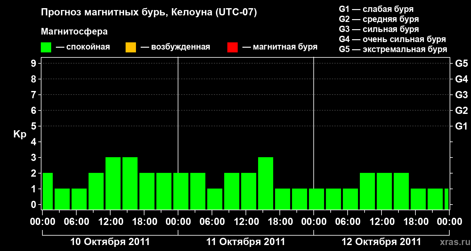 Прогноз магнитных бурь в Келоуне — 10 октября 2011 года