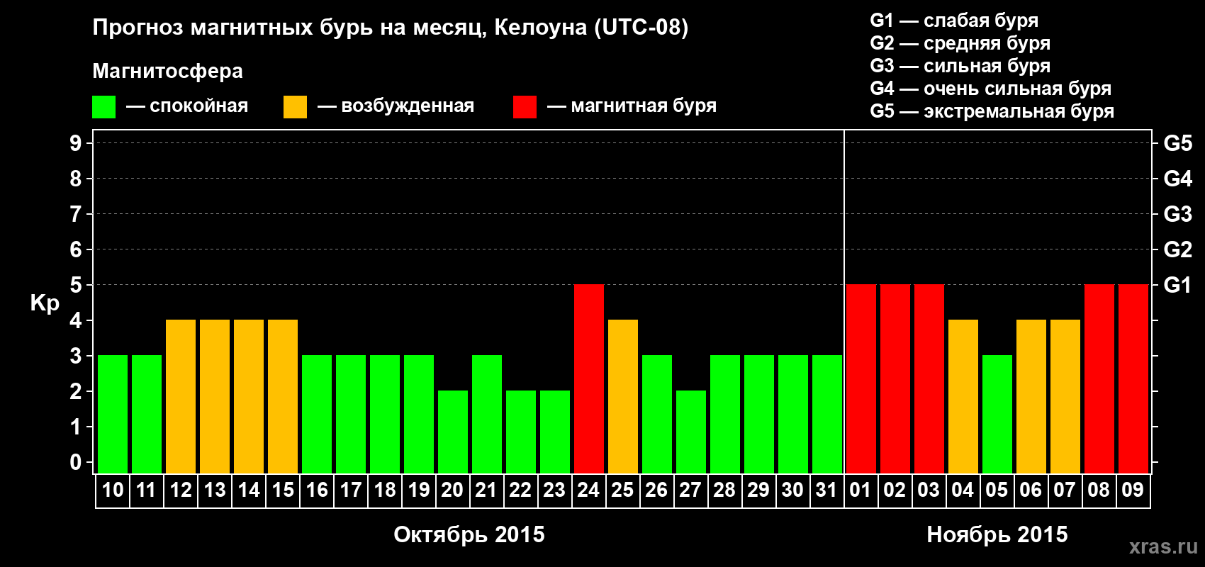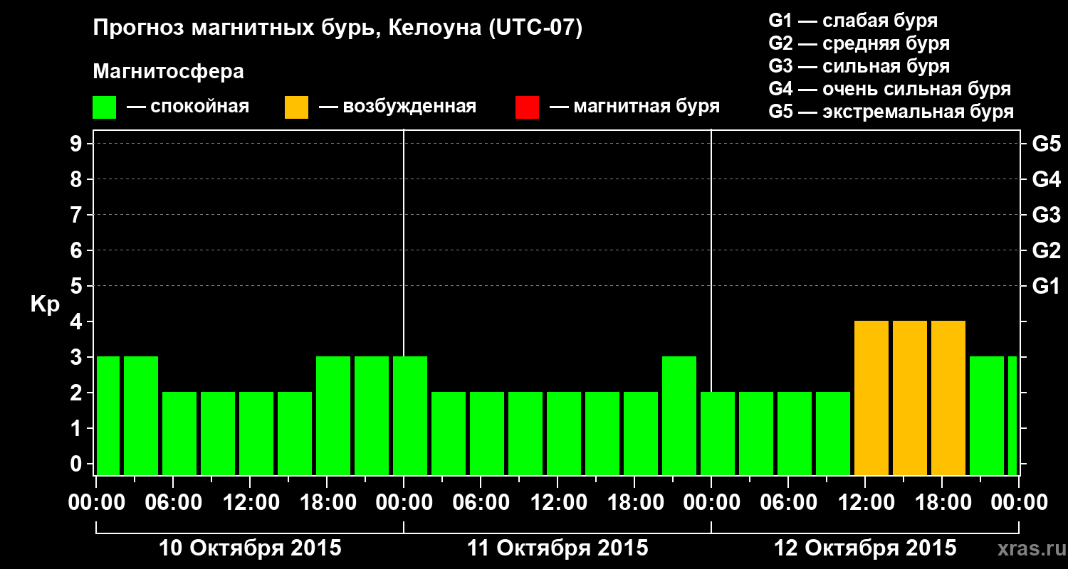 Прогноз магнитных бурь в Келоуне — 10 октября 2015 года