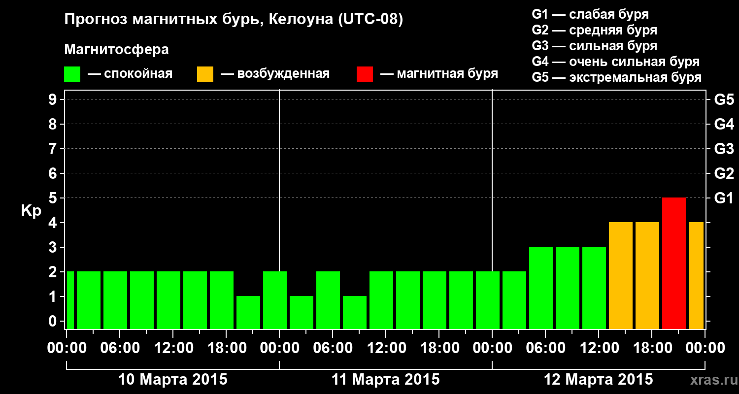 Прогноз магнитных бурь в Келоуне на 10 марта 2015 года