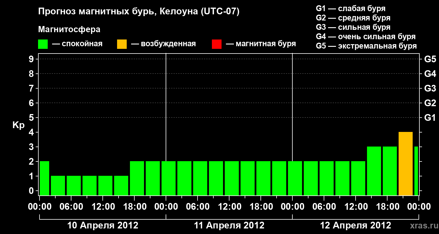 Прогноз магнитных бурь в Келоуне — 10 апреля 2012 года