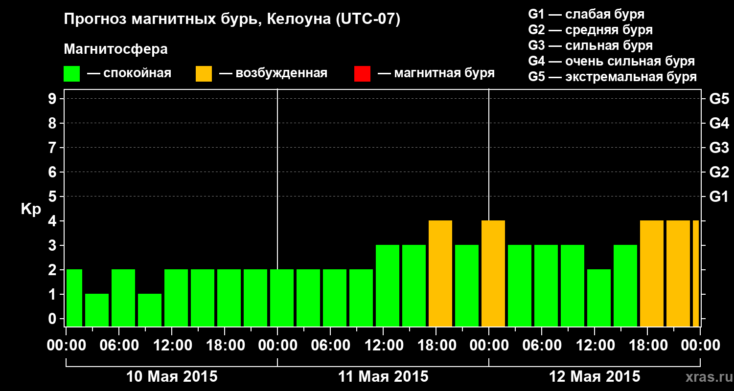 Прогноз магнитных бурь в Келоуне — 10 мая 2015 года