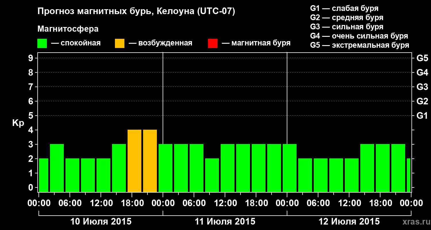 Прогноз магнитных бурь в Келоуне на 10 июля 2015 года