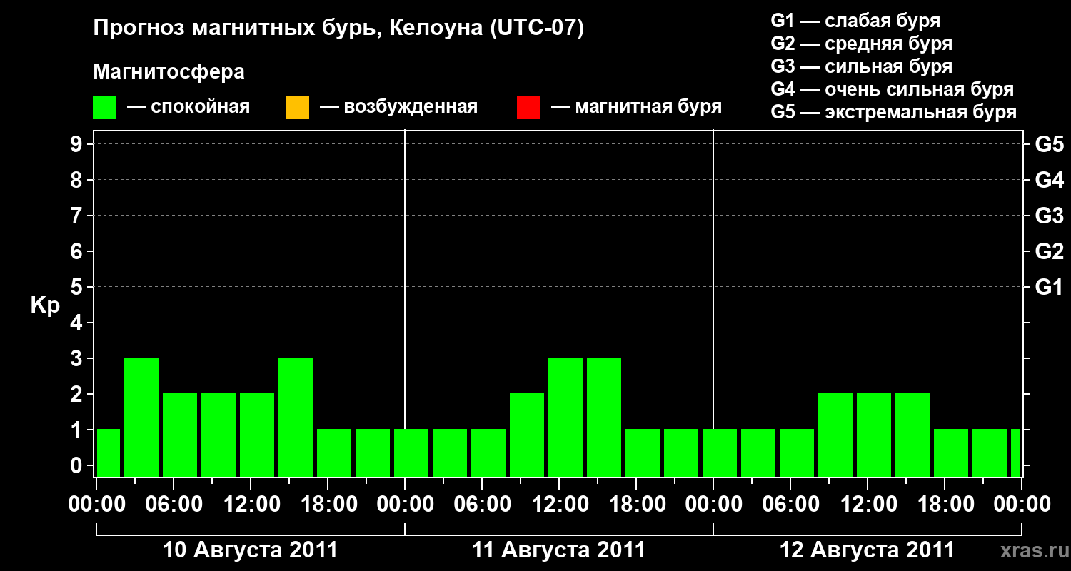 Прогноз магнитных бурь в Келоуне — 10 августа 2011 года