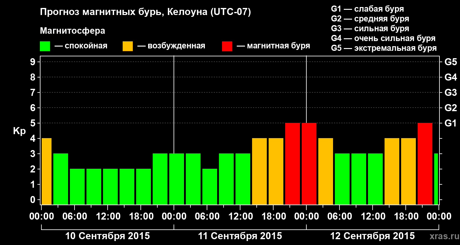 Прогноз магнитных бурь в Келоуне — 10 сентября 2015 года