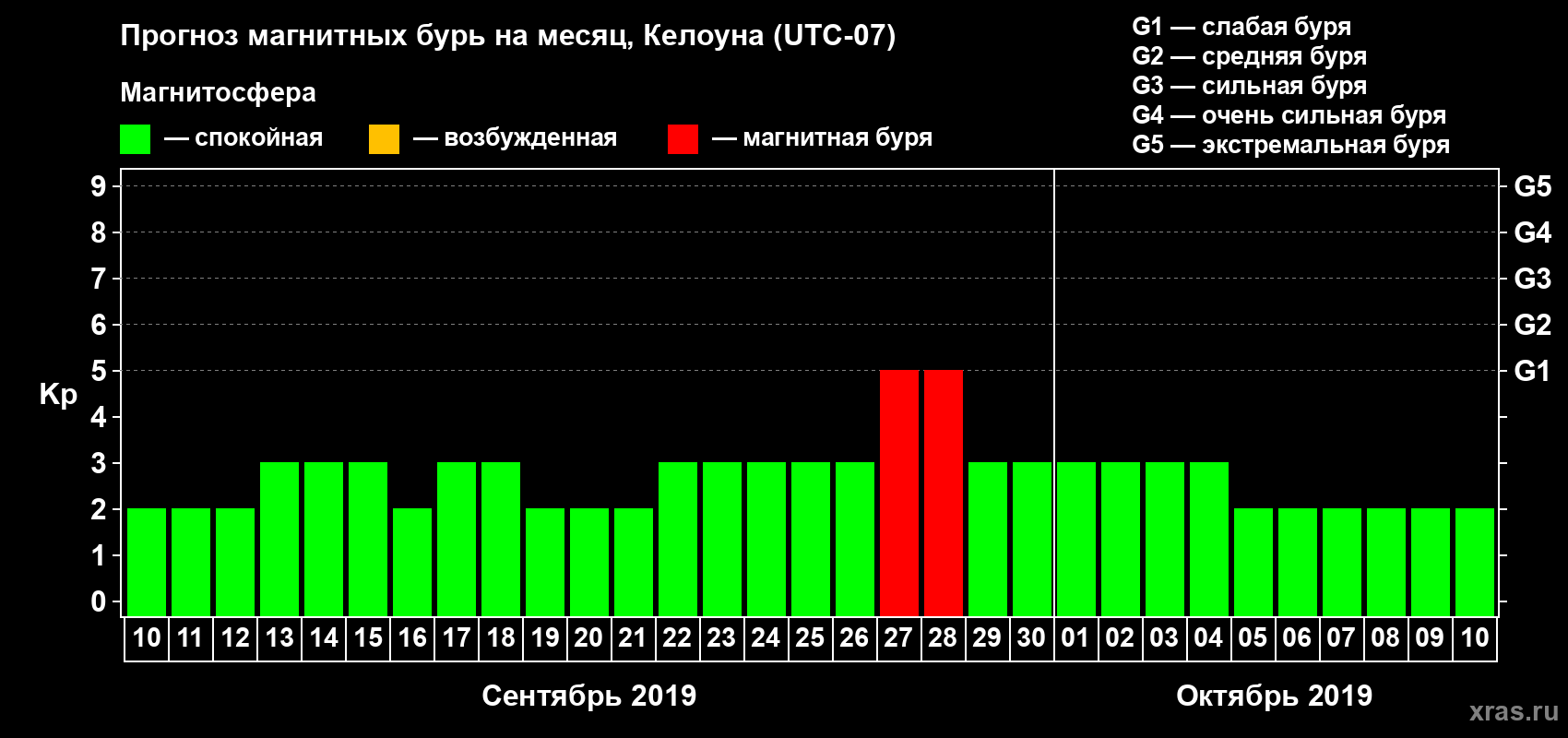 Прогноз магнитных бурь в Келоуне — 10 сентября 2019 года